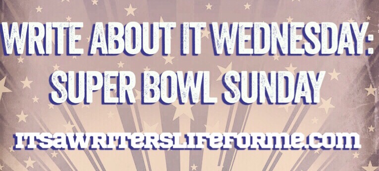 Happy Hump Day, Writers! Welcome to Write About It Wednesday! This Sunday is the biggest sporting event in America. The Super Bowl. On Sunday, February the 4th the Philadelphia Eagles will battle against the New England Patriots in an epic game of football. Meanwhile, families and friends around the country will gather together in front of their televisions to watch the game. They will cookout hamburgers, hot dogs, barbecue chicken, and smoke briskets. They’ll order an enormous amount of pizza and giant sandwiches. Consume massive amounts of chips and dips and all the tasty snacks. (Can you tell my favorite part of Super Bowl Sunday is the food? Well, the food and the commercials. HaHa!) Emotions will rise and fall based upon how the favored team is playing. Fights will be had, couples will fall in love, money will be won and lost. It’s like the whole country stops what they normally do and comes together over this one football game.